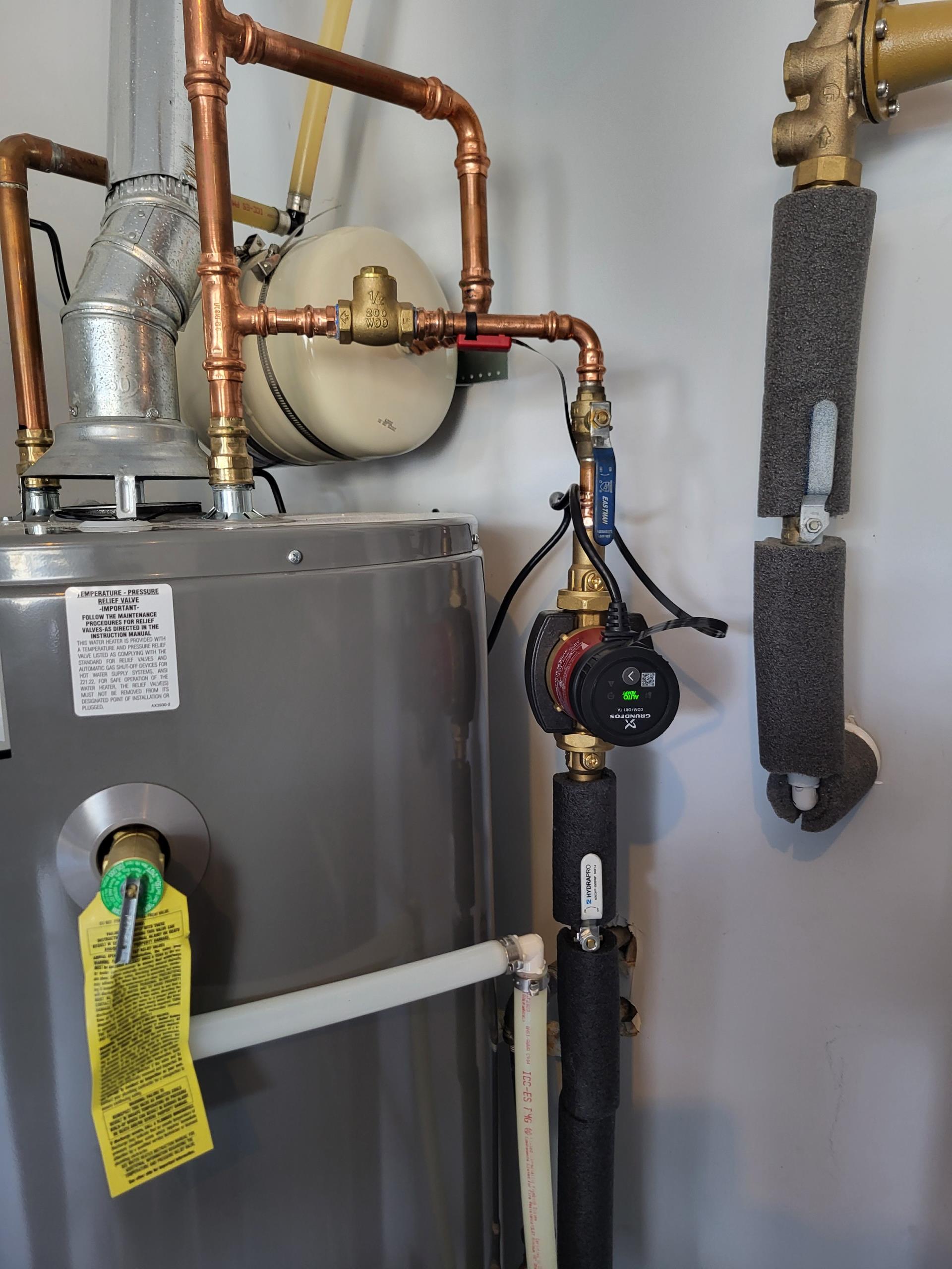 We responded to our customers home to address issues with the main water line supply and aging valves in the basement. After evaluating the plumbing system, we found that the existing pressure reducing valve (PRV) and the main shut off valve were no longer operating reliably. We removed the old components and installed a new PRV and shut off valve to restore proper water pressure control and dependable isolation of the homes water supply. We also inspected the nearby expansion tank and determined it had failed, so we replaced it with a properly sized new unit to help regulate thermal expansion within the plumbing system. In addition, we replaced a worn off shut off valve for the exterior hose bibb to ensure smooth operation and prevent future leaks. Once all installations were complete, we pressurized the system and verified leak free operation throughout the home.