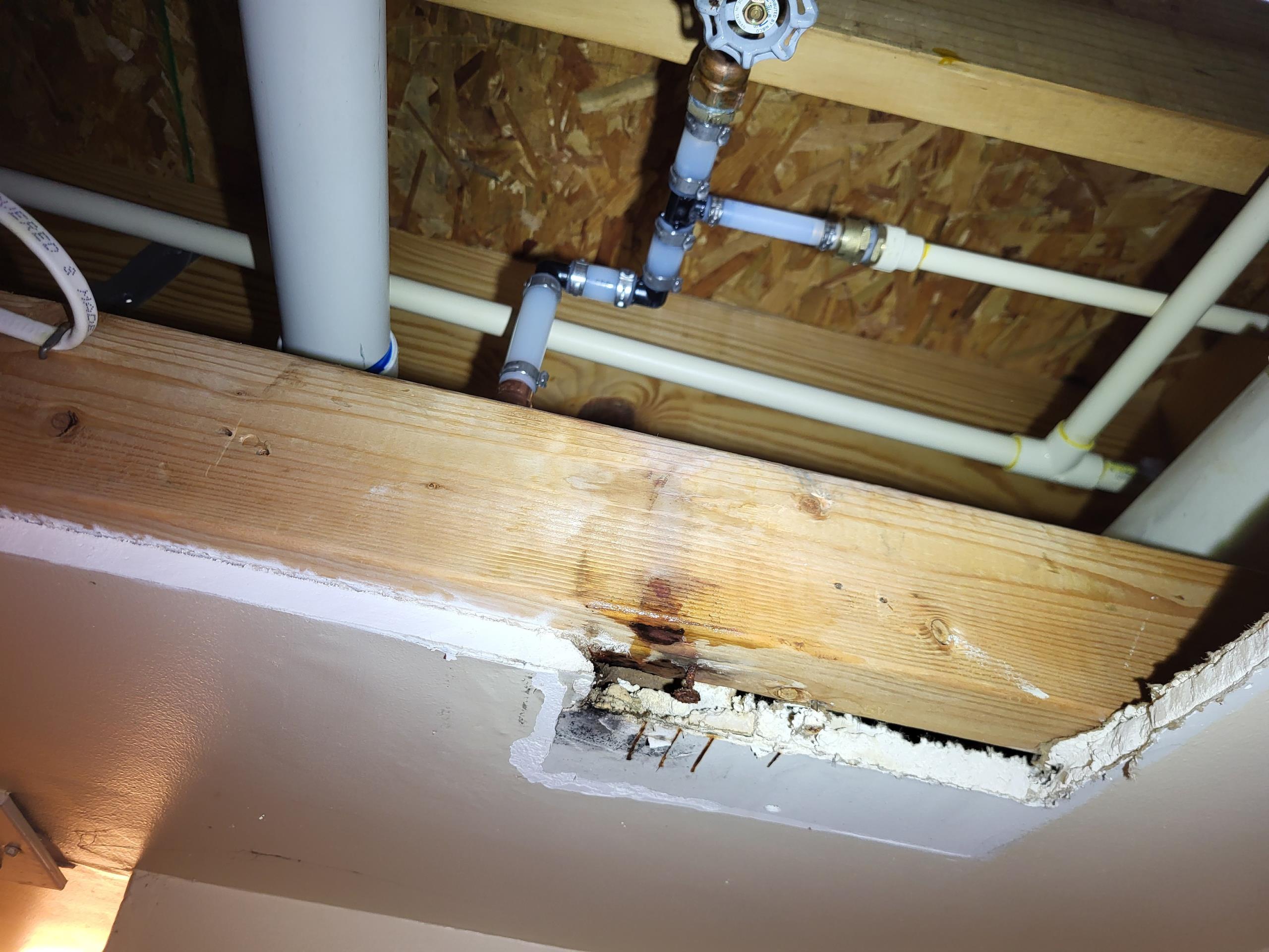 We found a leak in the basement ceiling, dripping into the toilet. We cut out the leak on cpvc and replaced it with pex piping. Once replacement is completed, we tested for proper leak free operation.