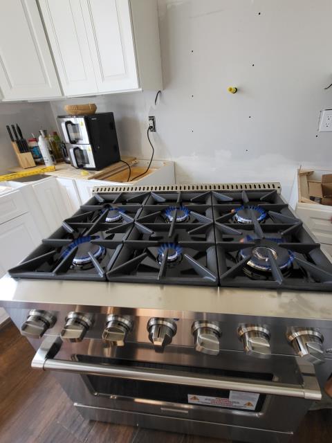 Dallas, GA - We responded to our customer in Dallas, GA to adjust the gas line connection for the kitchen stove. We shortened the existing gas line so the stove could sit properly against the wall. All connections were secured and properly aligned during the adjustment. After completing the work, we tested the gas line to ensure safe and leak free operation. The stove is now positioned correctly and the gas connection is operating safely.