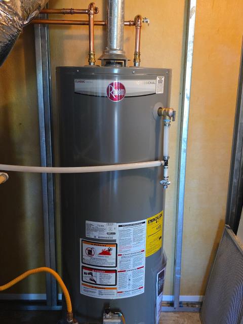 We responded to our customers home due to replacing an older water heater as part of preventative maintenance before the system failed. The existing unit has reached the end of its expected service life, and replacing it proactively helps prevent leaks, water damage, and unexpected loss of hot water. After reviewing replacement options with our customer, we proceeded with installing a new Rheem 50 gallon gas water heater. We removed the old unit and prepared the area to ensure all connections met current safety and code requirements. We installed the new Rheem 50 gallon gas water heater with properly secured gas and water connections. Once the installation was complete, we filled the tank, restored gas service, and tested the system for proper operation and leak free performance. The new water heater is now running efficiently and ready to provide reliable hot water.
