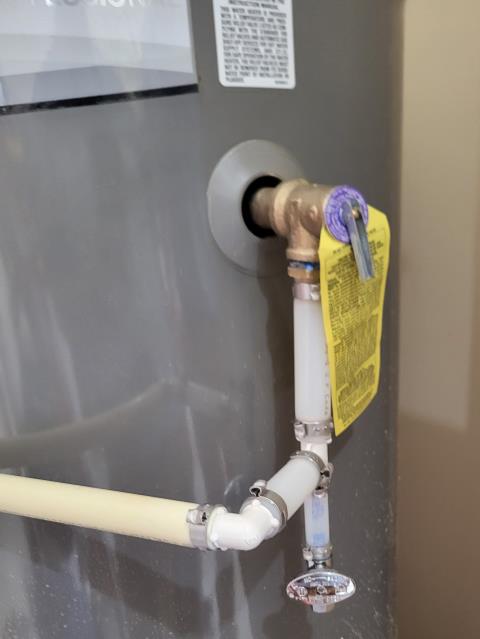 We responded to our customer after they reported a leaking thermal expansion tank near their water heater. A failing expansion tank can cause constant dripping and lead to high water pressure and water heater damage if not addressed. Upon inspection, we confirmed the thermal expansion tank was leaking continuously and no longer functioning properly. To resolve this issue, we removed the failed expansion tank and installed a new replacement. After installation, we turned the water back on and checked the system for leaks ad proper pressure control. Everything tested leak free and and is now operating as designed.